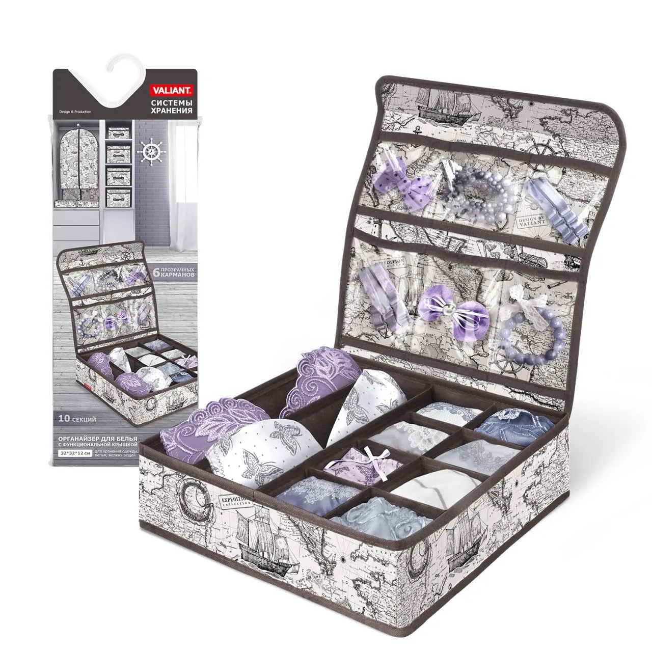 VAL JR-S5 Органайзер для бюстгалтеров с прозрачной крышкой, 5 секций, 32*32*12 см, JARDIN