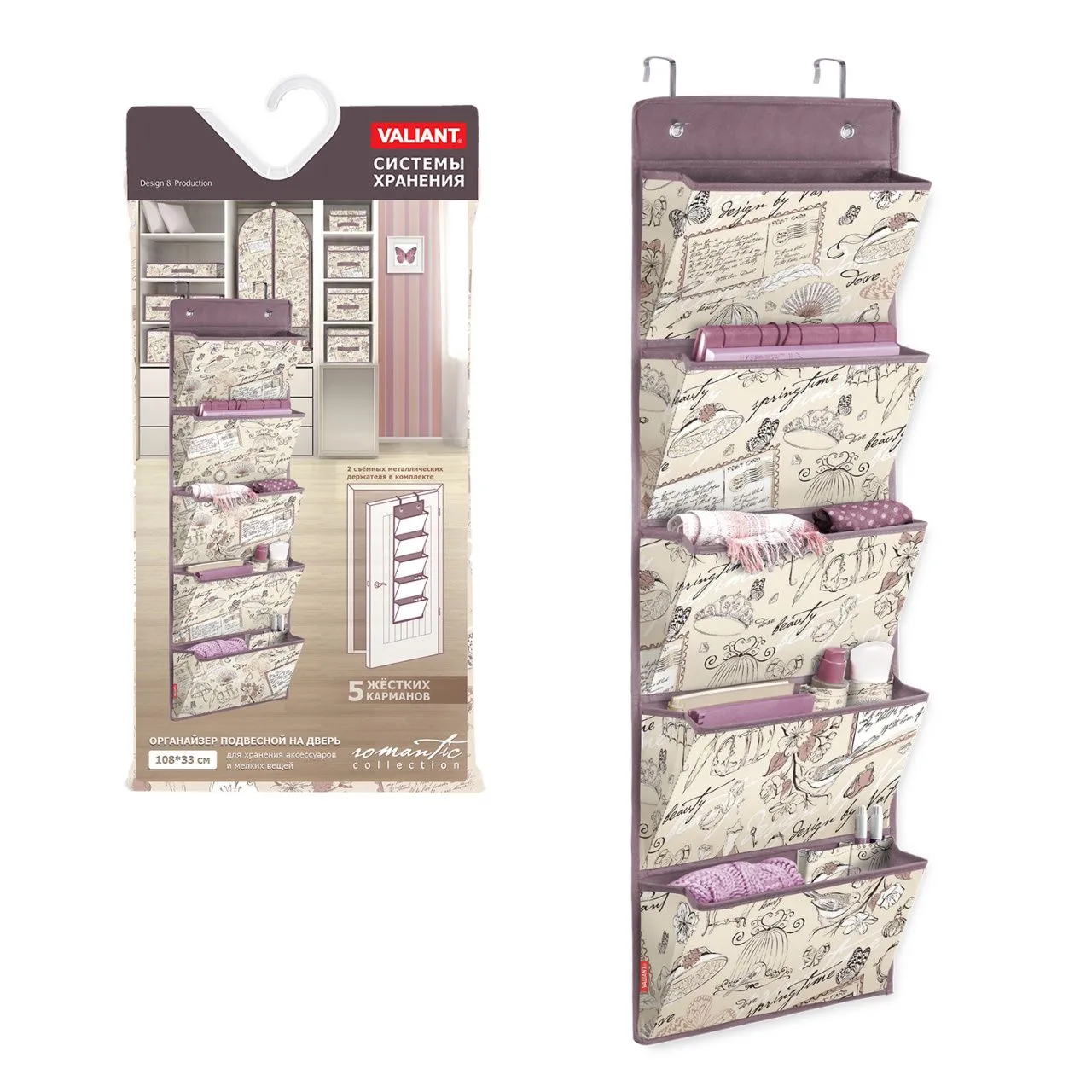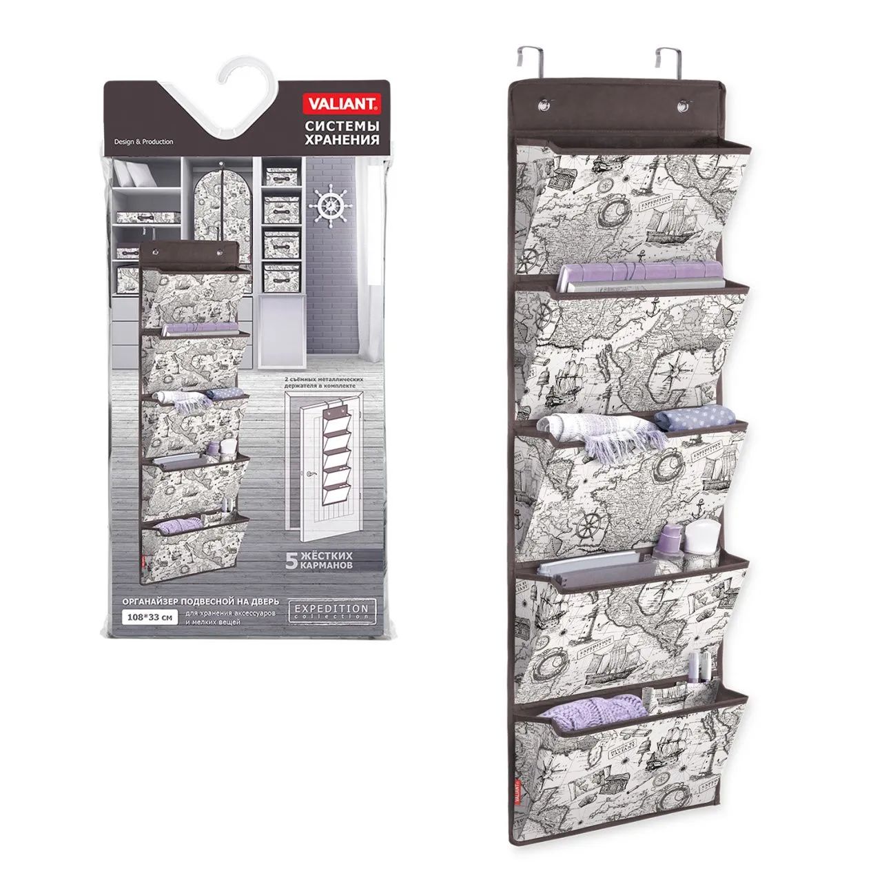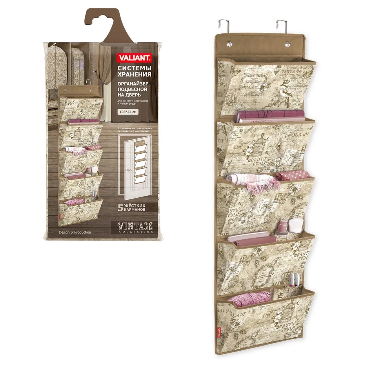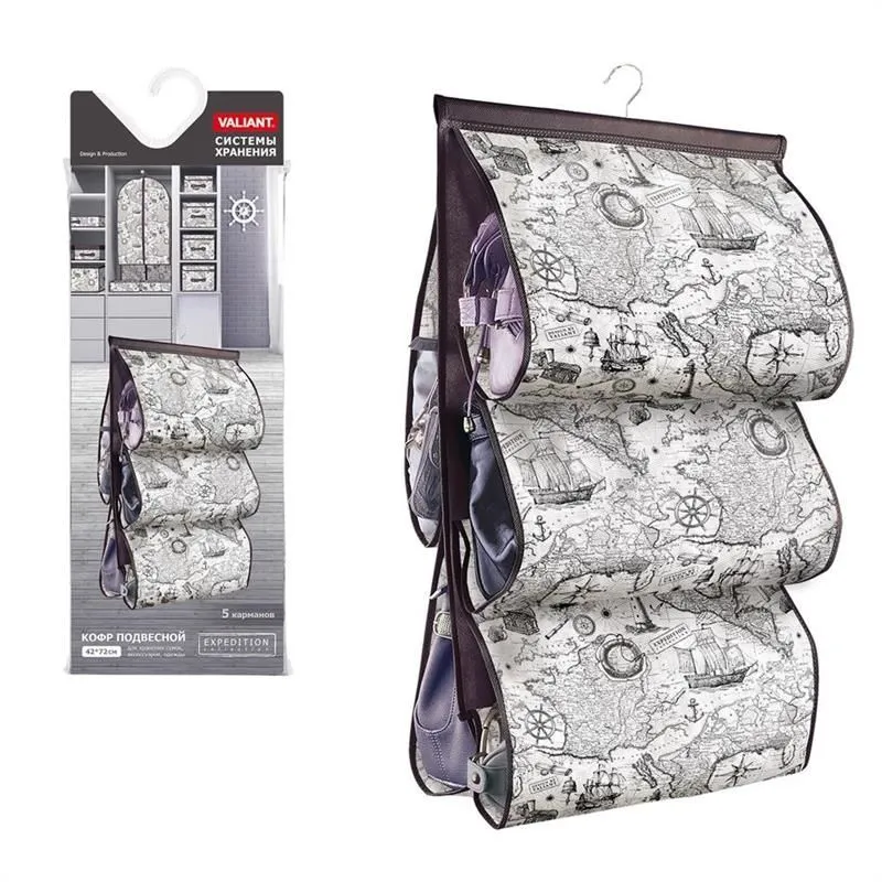 VAL VN-P5 Кофр подвесной для хранения сумок, с вешалкой, 5 карманов, 42*72 см, VINTAGE