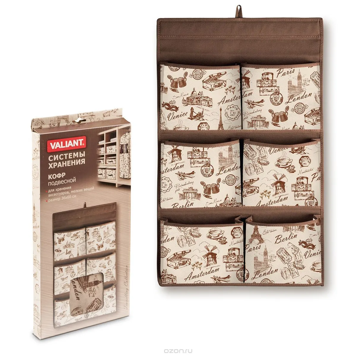 Органайзер с карманами подвесной, 3 отделения 20х60 см, цвета МИКС 2609251