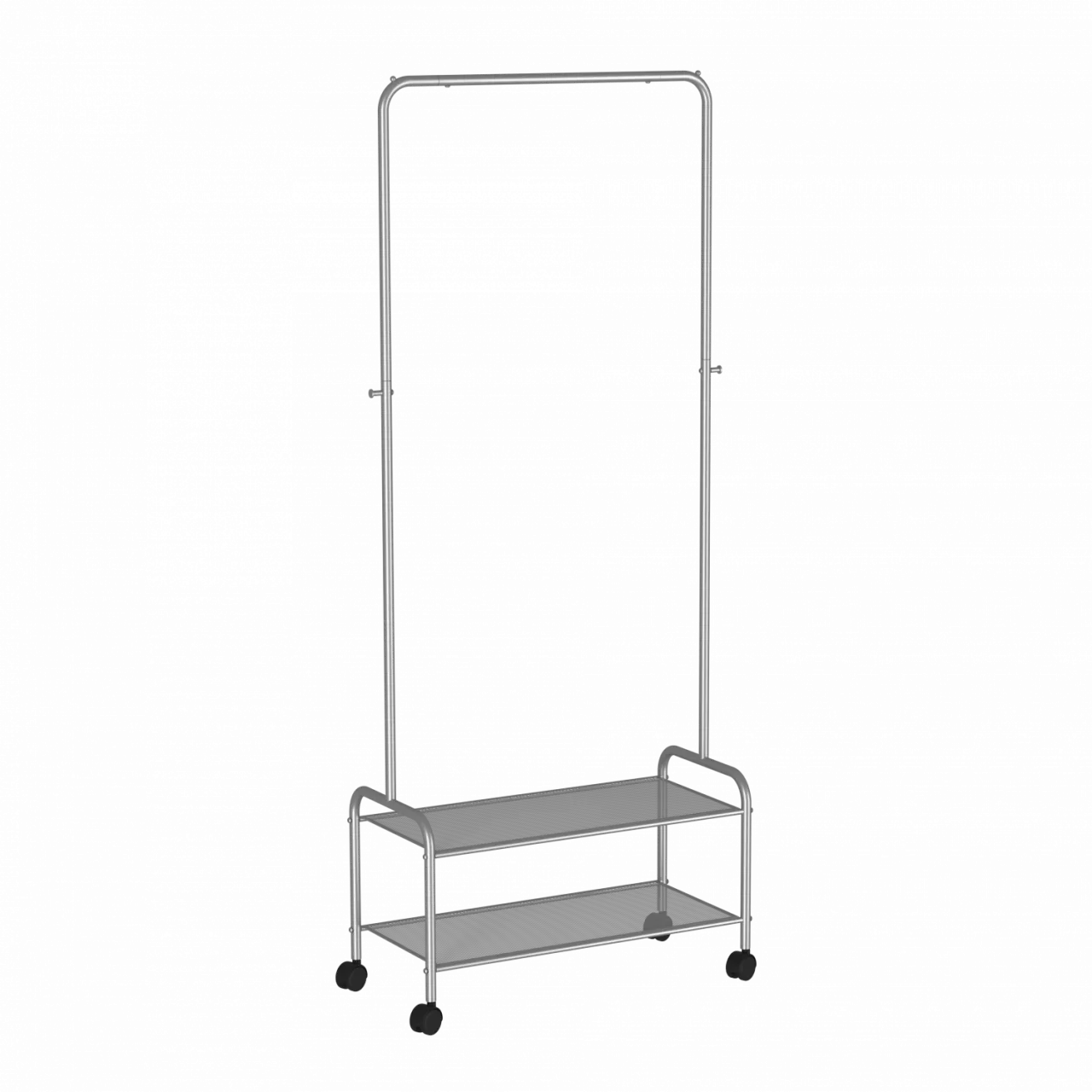 Вешалка гардеробная "Валенсия 22М" с двумя полками, на колёсах (VALENCIA 22M clothes rack) (Металлик)