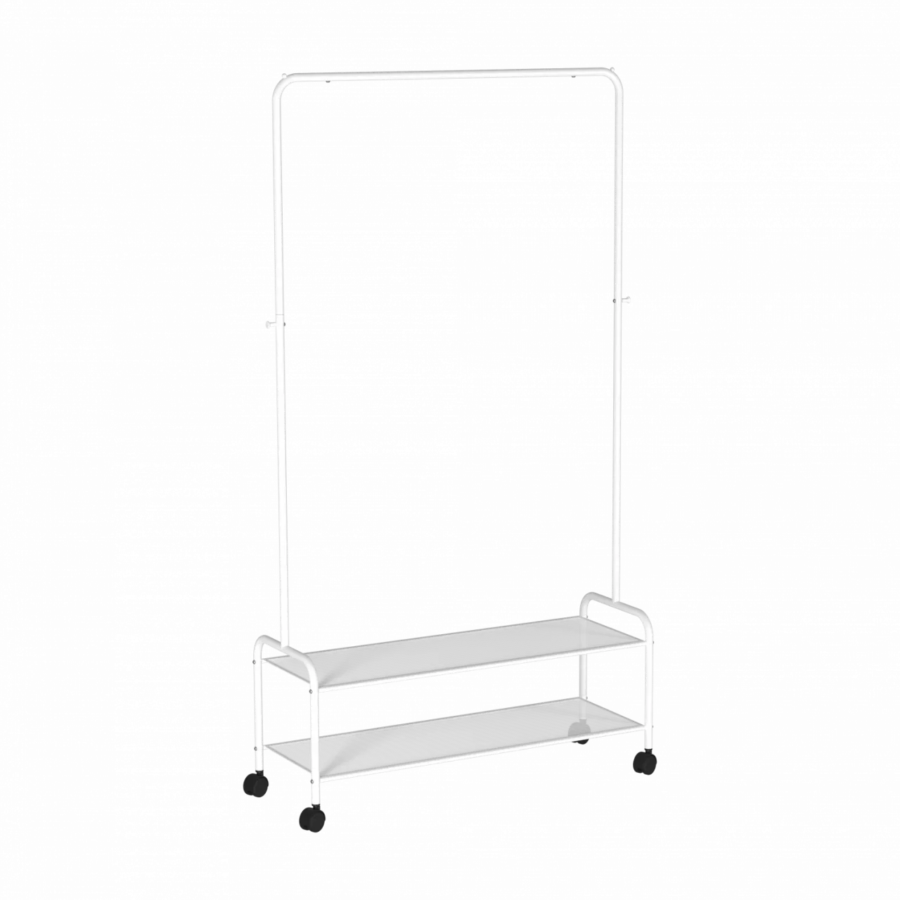Вешалка гардеробная "Валенсия 32М" с двумя полками, на колёсах (VALENCIA 32M clothes rack) (Белый)