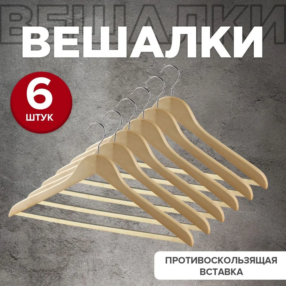 VAL 16613S6 Набор вешалок дерев, 6 шт., прямых, с нескол. переклад., 44.5*23*1.2 см, натур. цвет