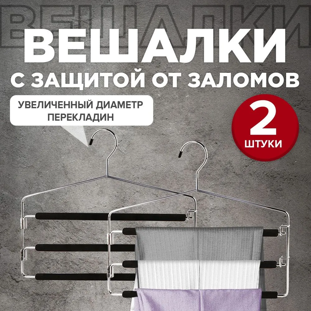 VAL 50325S2 Набор вешалок метал., 2 шт., 3-х уровн., с двумя разъемными перекладинами, с мягким противоск. покрытием, 41*33*1.5 см