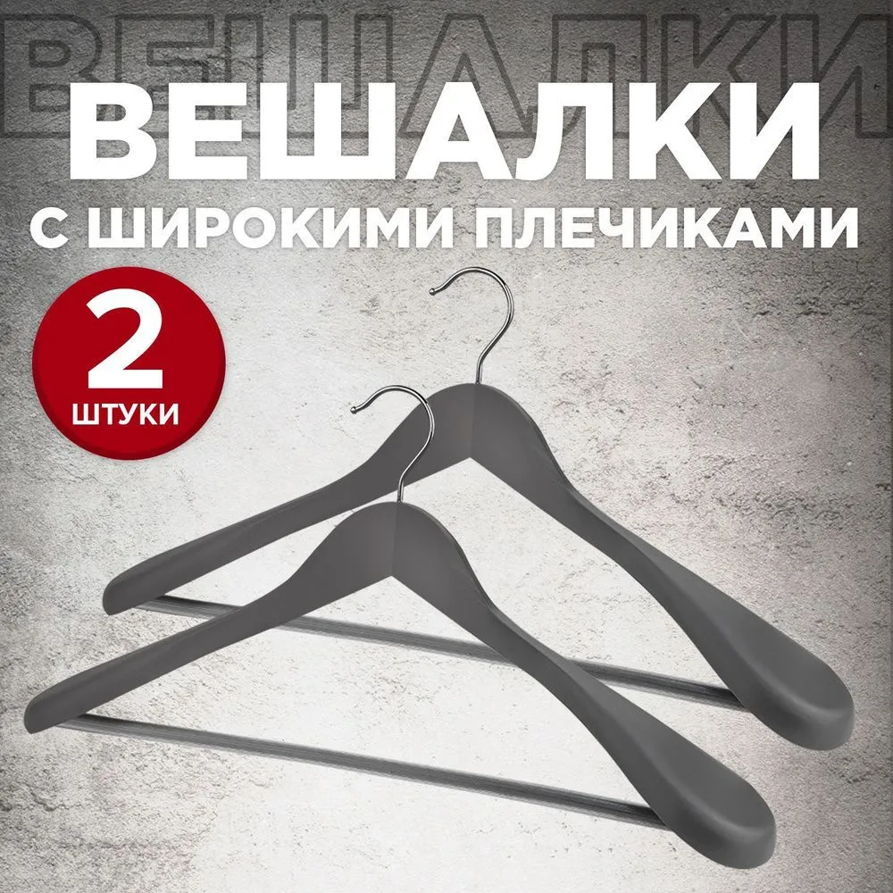 VAL JB-19708S2 Набор вешалок дерев., 2 шт., с расшир. плеч., 44.5*23*5.8 см, JAPANESE BLACK