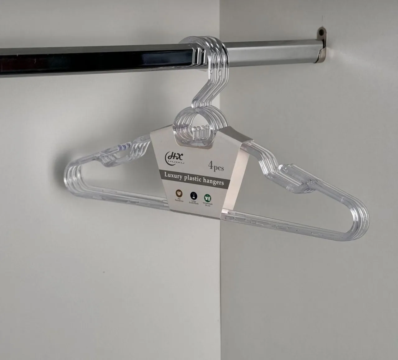 #Набор из 4 пластиковых бесцветных вешалок, HX-S05T