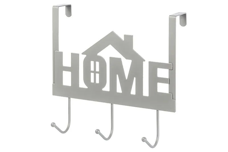 Вешалка на дверь навесная 3 крючка "HOME" 27,5*11,5*25,5 см, серая, расстояние между крючками 9,5 см, рассчитана на толщину дверцы не более 4,5 см, ме