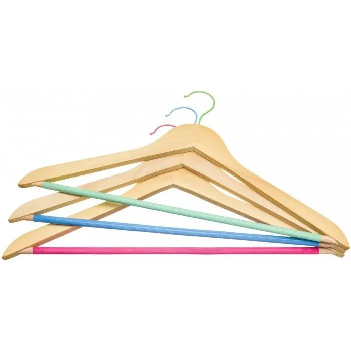 Набор вешалок 3 штуки "Дуб" 44,5*1,2*23 см, с нескользящей перекладиной (розовая + голубая + зеленая), дерево + металл + PVC (дерево - клен, металл -