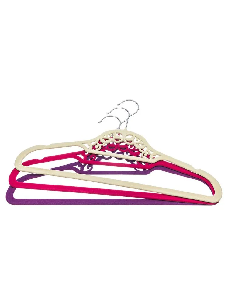 Набор вешалок "Бордовая + бежевая + фиолетовая" 41,5*0,5*23 см кружево, 3 штуки, с перекладиной, пластик + велюр + металл