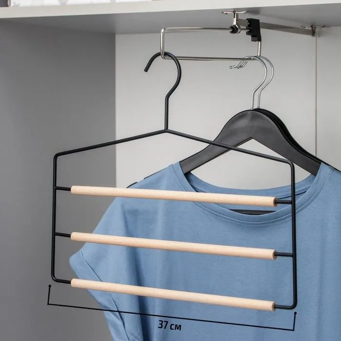 Вешалка для брюк и юбок 3 перекладины, 37х32х1,1 см "Wood" цвет чёрный 6257734