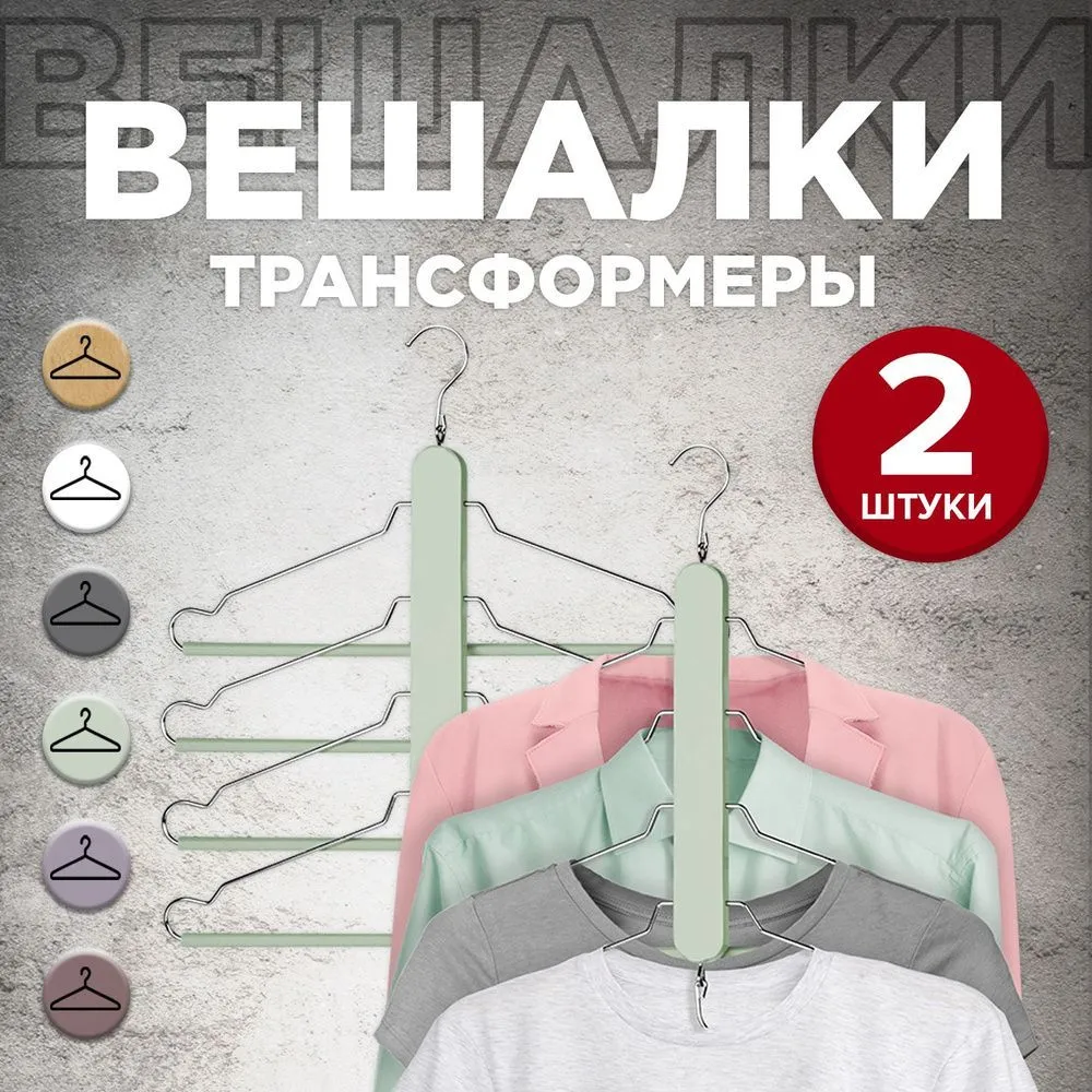 VAL JR-18082S2 Набор вешалок-трансформеров дерев., 2 шт., 4-х уровн., с перекладиной, 43*20*34 см, цвет зеленый, JARDIN