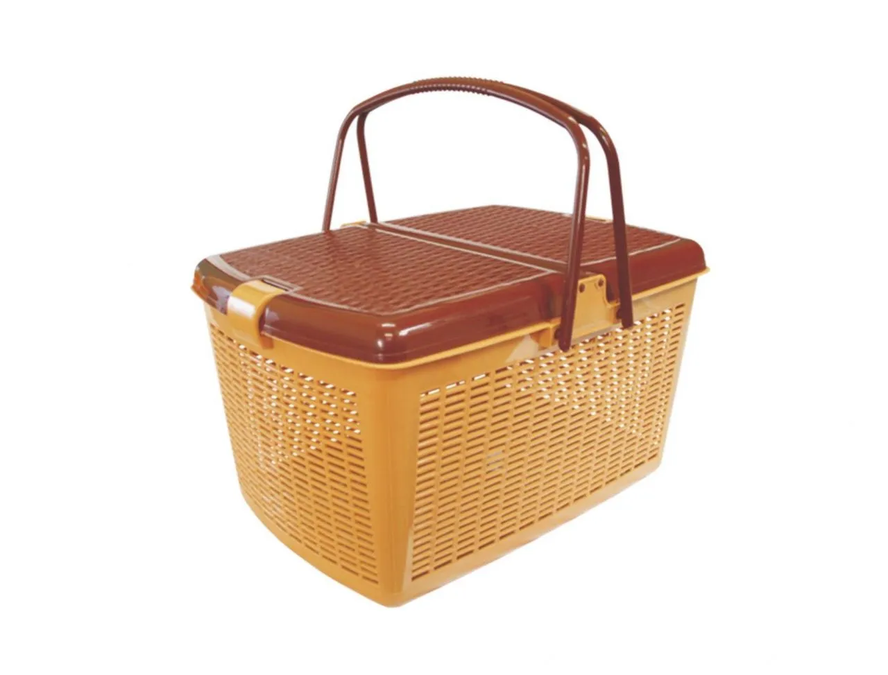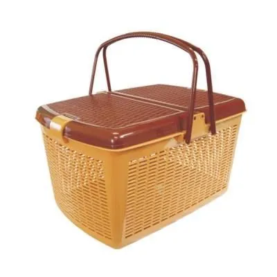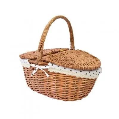 Корзина для пикника с крышкой сред размер, 34*23*17 см высота ручки 14 см. Серый тканевый вкладыш 124bas-2