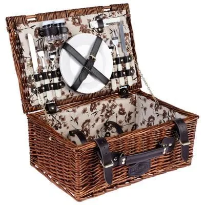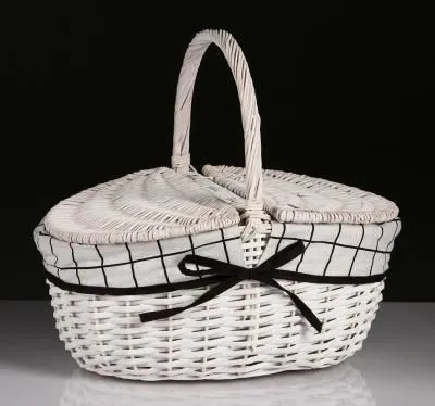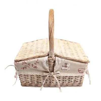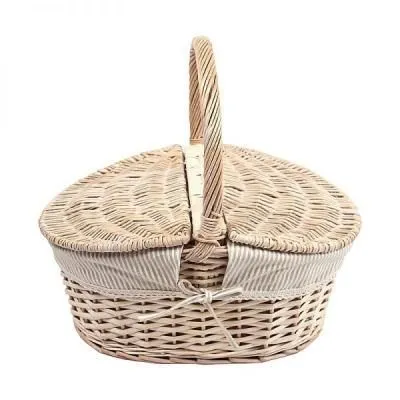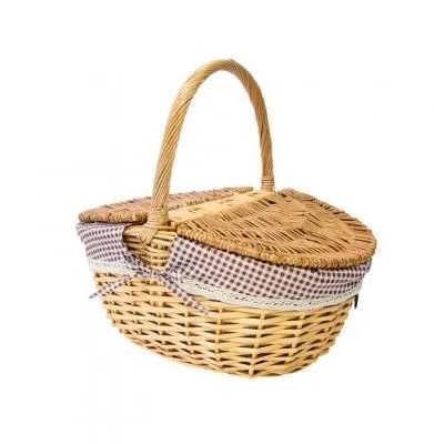 Корзина для пикника с крышкой средн размер, 34*23*17 см высота ручки 14 см. Красный тканевый вкладыш 123bas-2