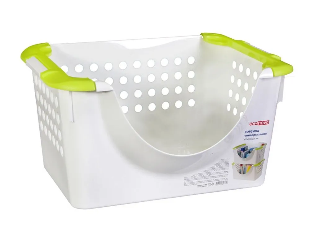Плетеная корзинка-лоток бело-серая, размер 2, 23*8 см 1467-5L