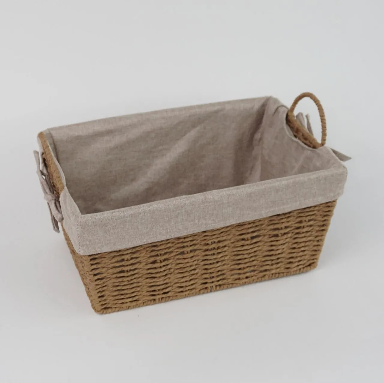 Корзина с ручками на метал каркасе плетеная, с тканевым вкладышем, 33*23*15 см TB-23Z027M-M