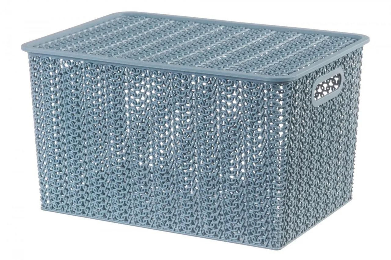 Корзинка Вязь 14л 350х245х205 мм с крышкой (голубая норка)
