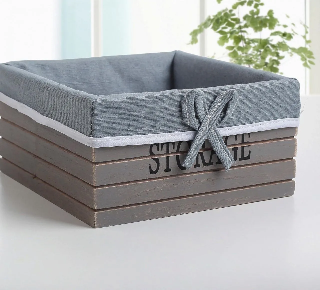 Корзина для хранения деревянная квадратная "Storage" 23х23х11 см, цвет серый, большая 3549378