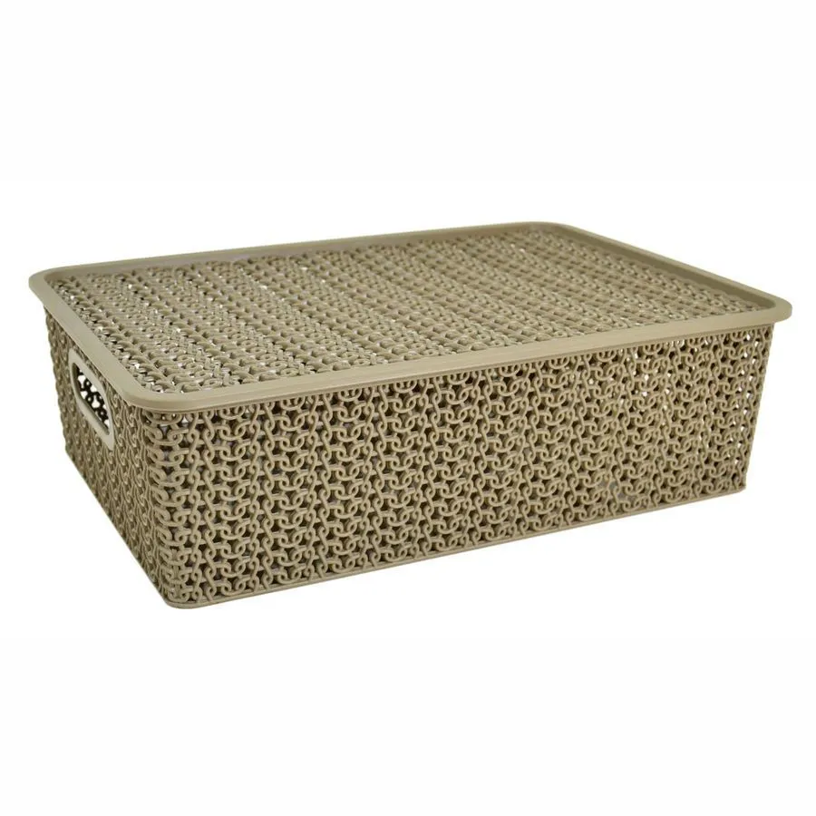 Корзинка Вязь 7,5л 350х245х105 мм с крышкой (капучино)