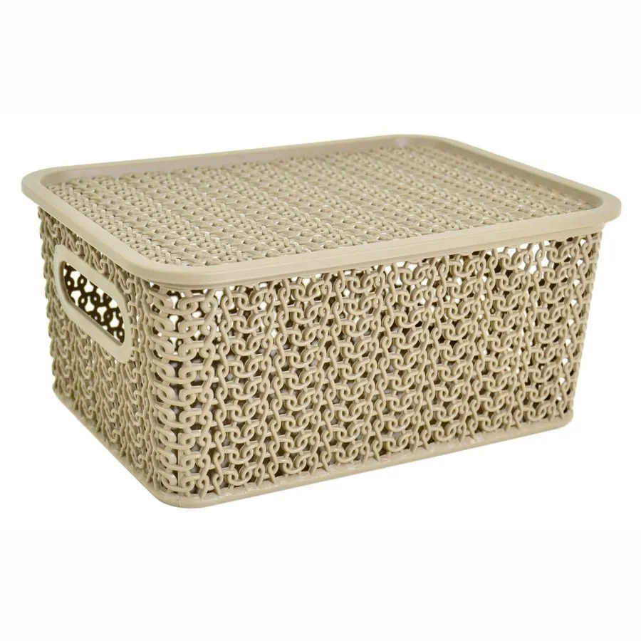 ##Корзинка Вязь 3л 235х173х105 мм с крышкой (капучино)