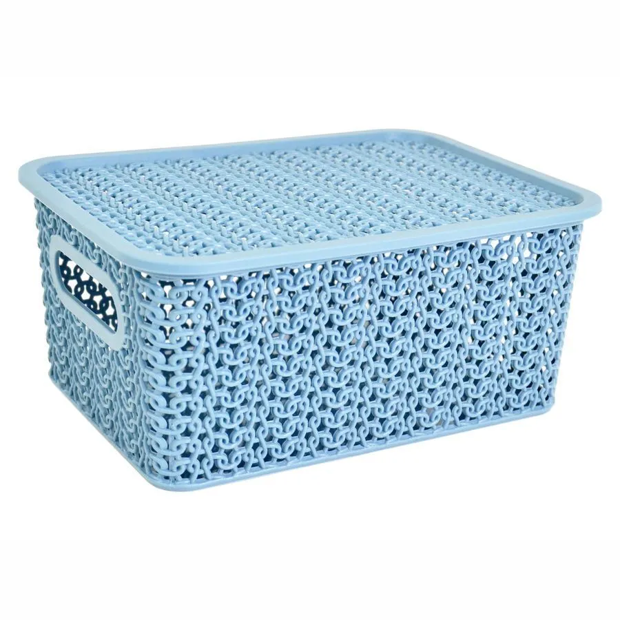 Корзинка Вязь 3л 235х173х105 мм с крышкой (голубая норка)