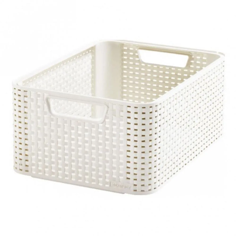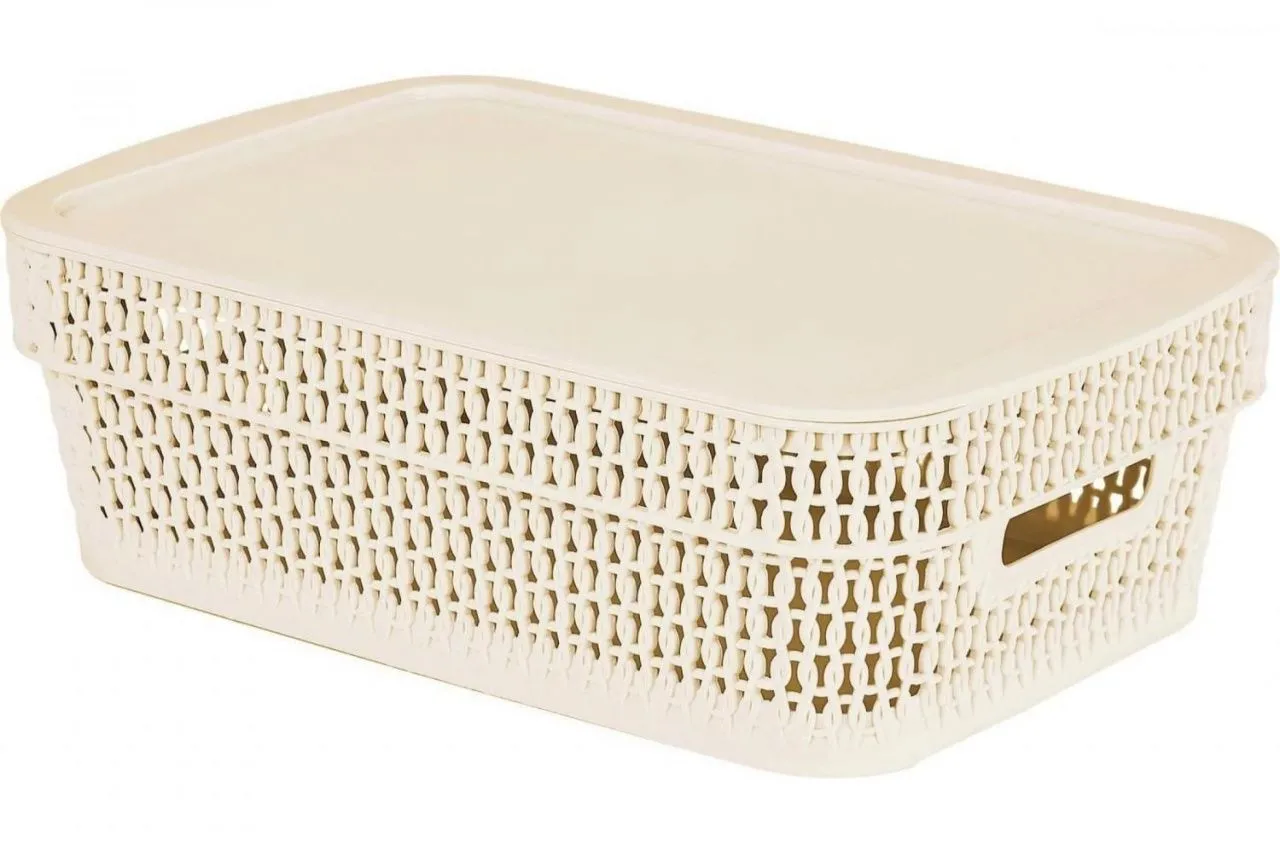 ##Корзина прямоугольная Ajur 3л с крышкой слоновая кость