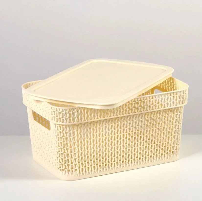 Корзина прямоугольная Ajur 5л с крышкой слоновая кость