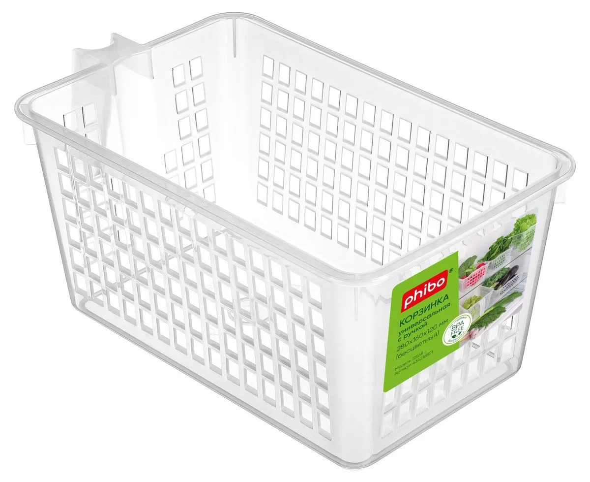 КОРЗИНКА УНИВЕРСАЛЬНАЯ С РУЧКОЙ 280х160х120 ММ (Бесцветный)