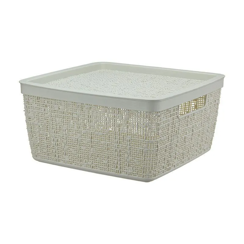 Коробка БЯЗЬ с крышкой 28х28х14см 8л белый ротанг