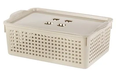 Коробка БЯЗЬ с крышкой D22см 4,5л белый ротанг