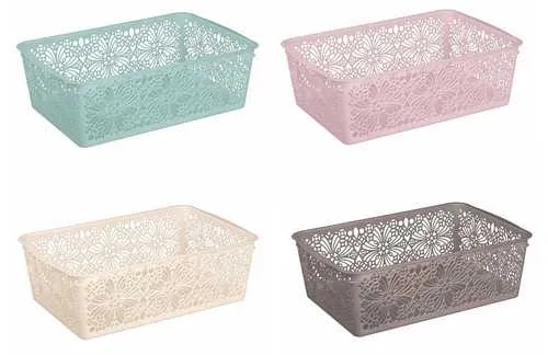 КОРЗИНКА УНИВЕРСАЛЬНАЯ FLORAL, 380Х250Х125 ММ (Микс 10) (бежевый флэк/зеленый флэк)