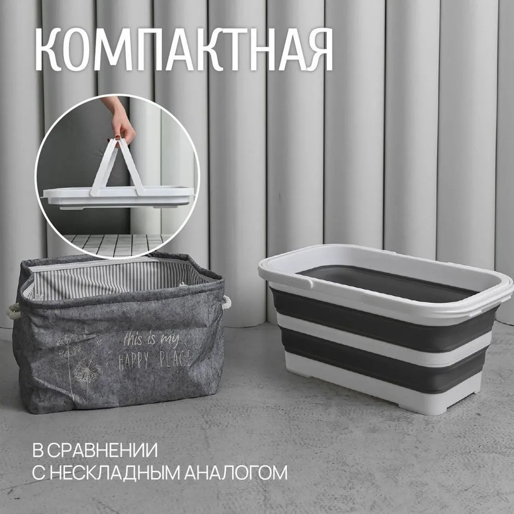 Корзина складная 15л с ручками, с крышкой-столиком, силикон, бело-серый XQ1A15A WELLDOM