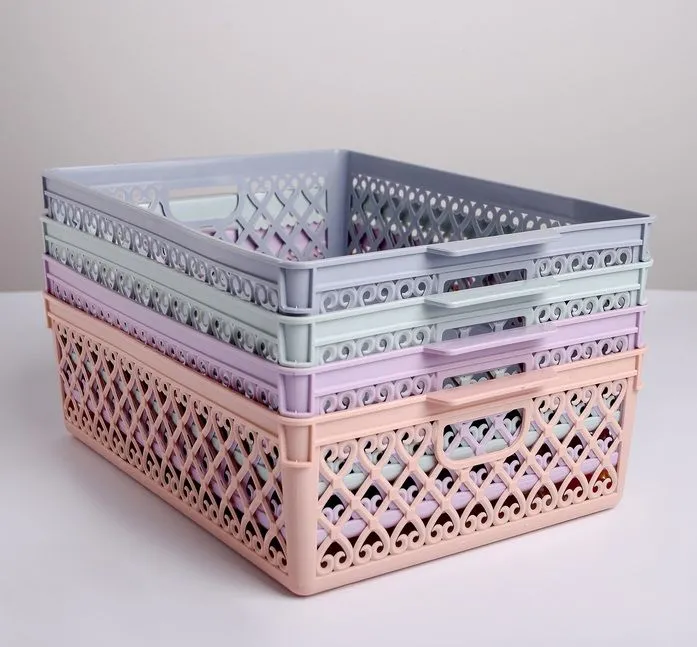 Корзина универсальная сетчатая квадратной формы с деревянной ручкой, цвет зеленый 20-117