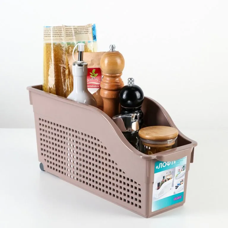 #Контейнер Лофт на колесах узкий 355х130х170мм пудра