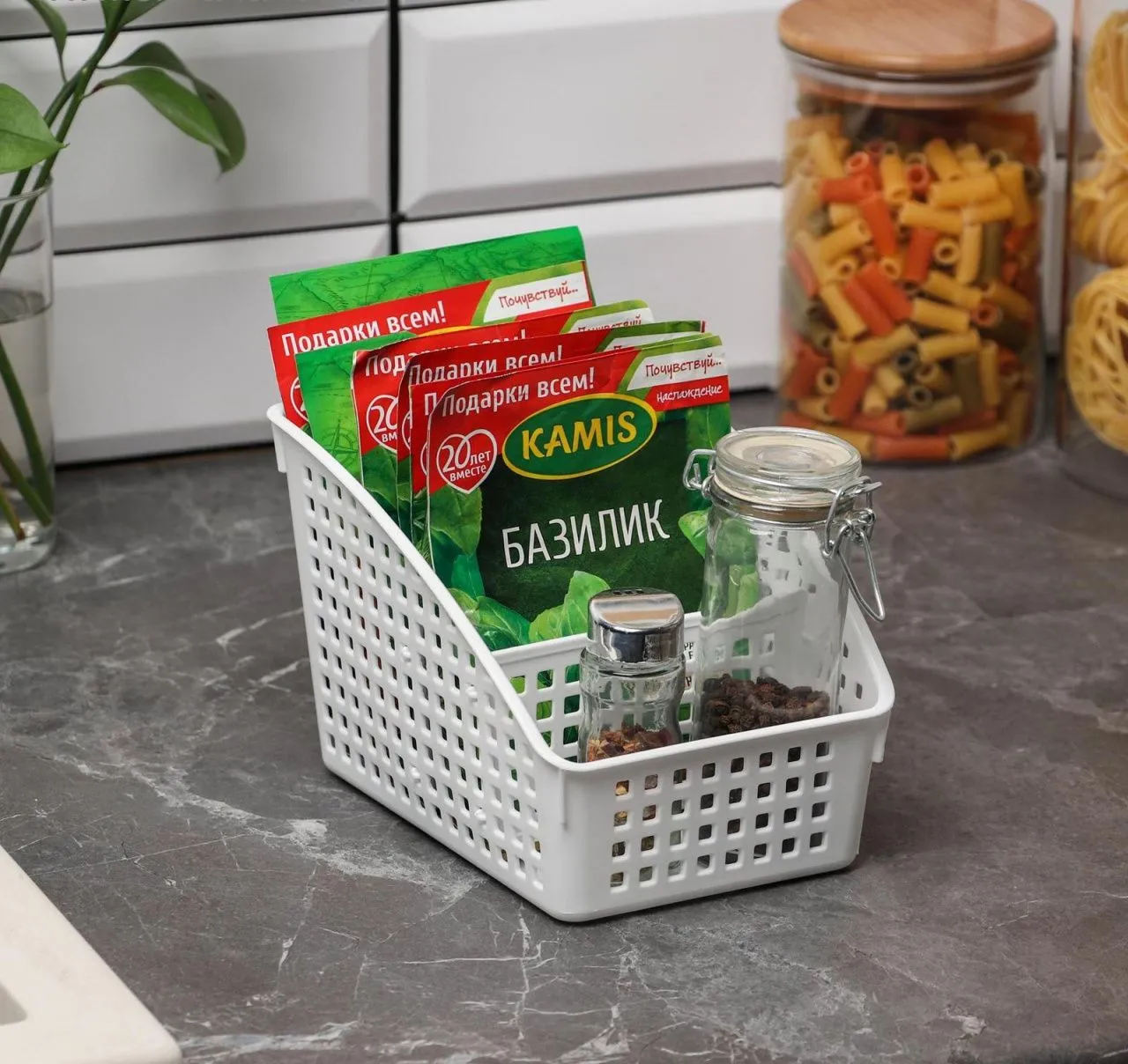 Органайзер 18*13,5*12 см "Лофт" белый с перегородками широкий (модель - 6720/06)