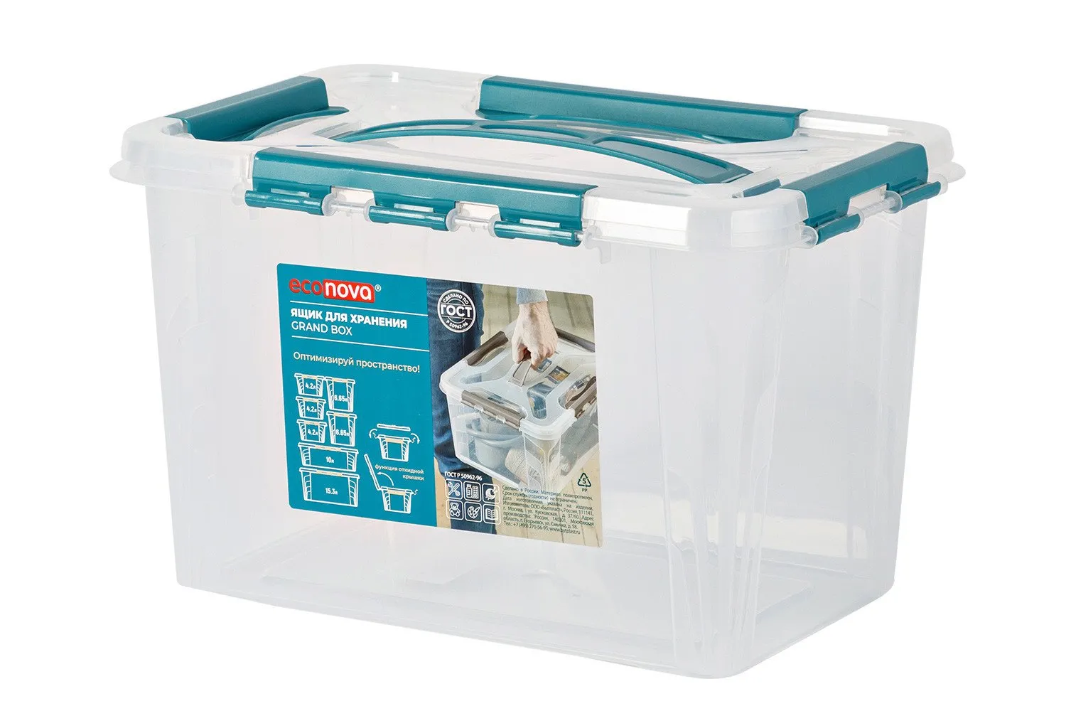 ЯЩИК ДЛЯ ХРАНЕНИЯ УНИВЕРСАЛЬНЫЙ С ЗАМКАМИ И РУЧКОЙ И ДЕКОРОМ "GRAND BOX", 290х190х180ММ, 6,65Л Микс