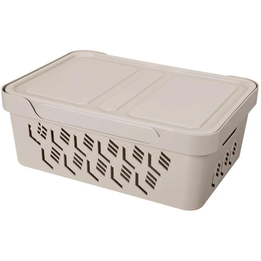Ящик с крышкой универсальный deluxe, 380х276х140 мм, 12л (светло-бежевый)
