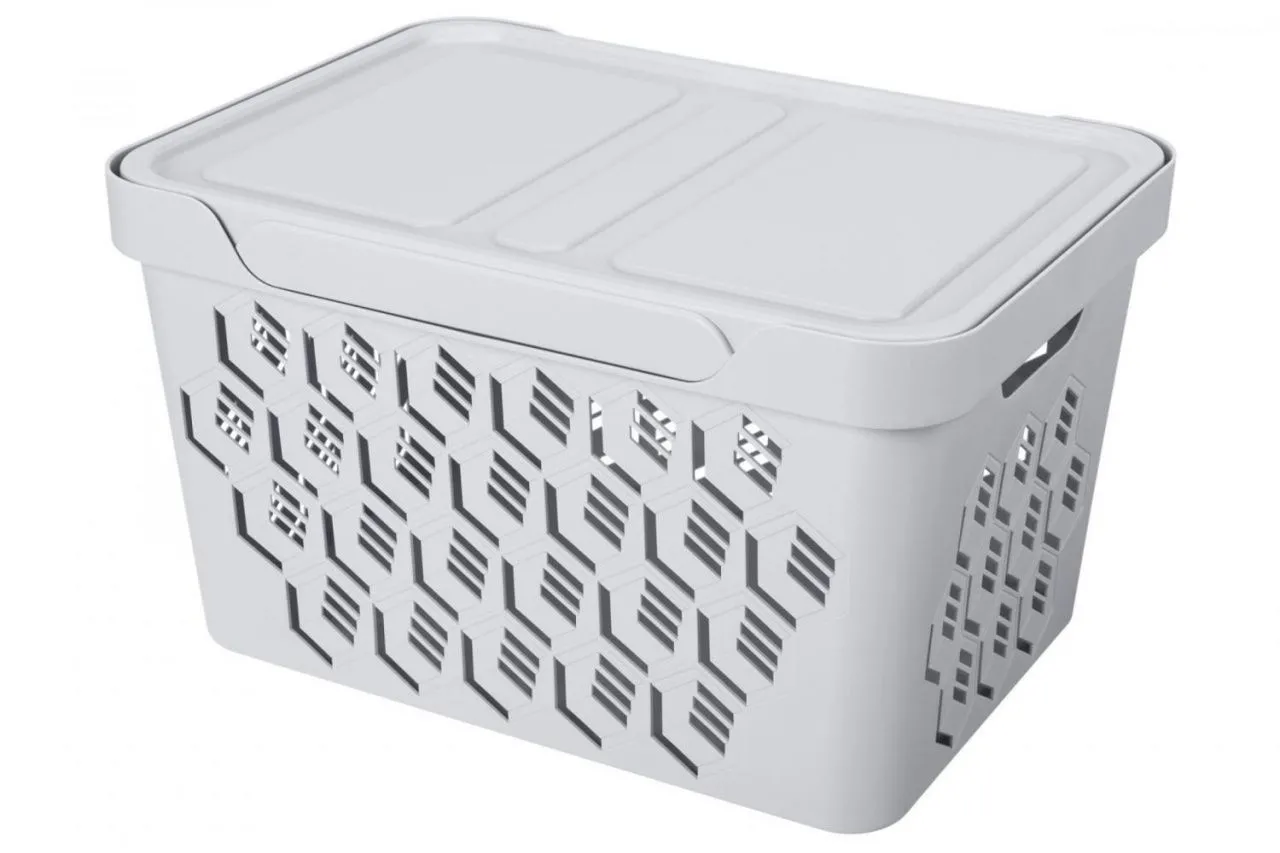 ЯЩИК С КРЫШКОЙ УНИВЕРСАЛЬНЫЙ DELUXE, 380х276х220 ММ, 18Л (светло-серый)