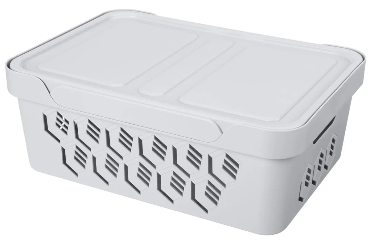 Ящик с крышкой универсальный Deluxe 380х276х140 ММ 12Л (Светло-серый)