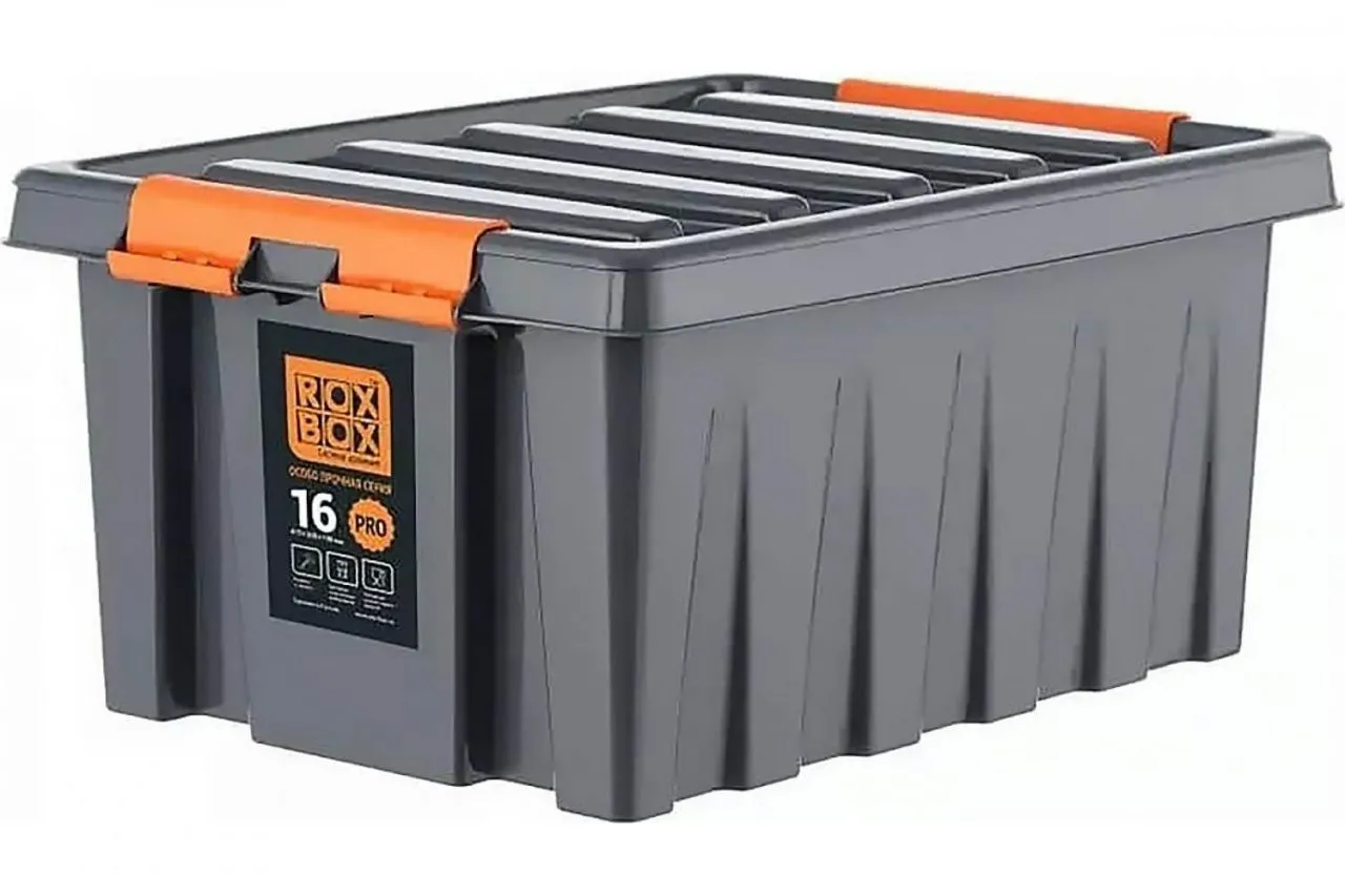 Ящик с крышкой особопрочный серии Rox Box PRO, "16", антрацитовый