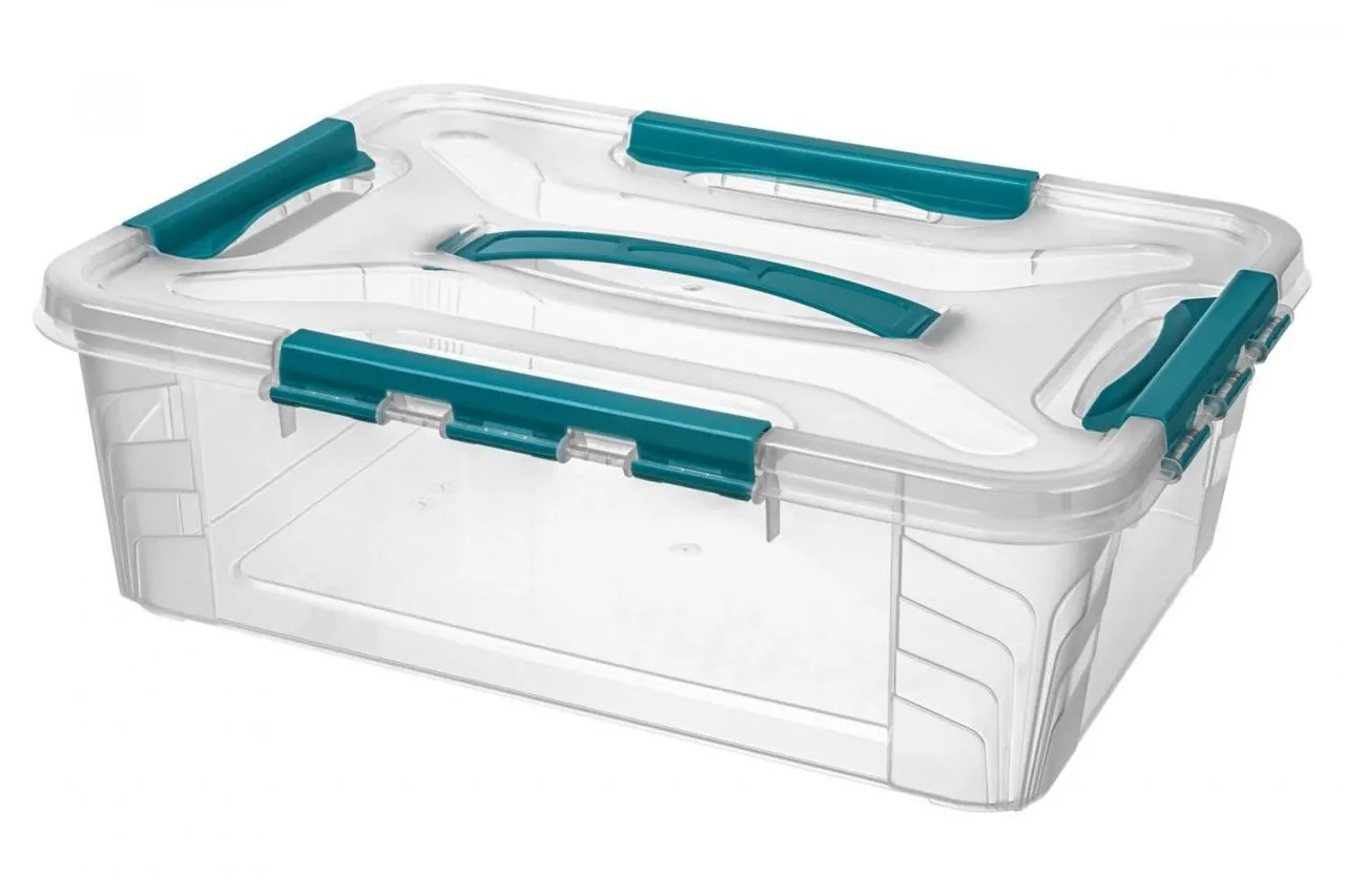ЯЩИК ДЛЯ ХРАНЕНИЯ УНИВЕРСАЛЬНЫЙ С ЗАМКАМИ И РУЧКОЙ "GRAND BOX", 390х290х124ММ, 10Л (Голубой)