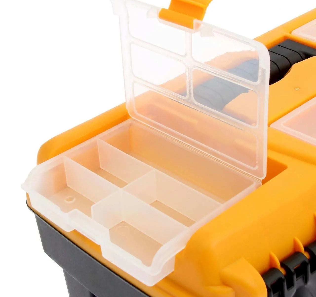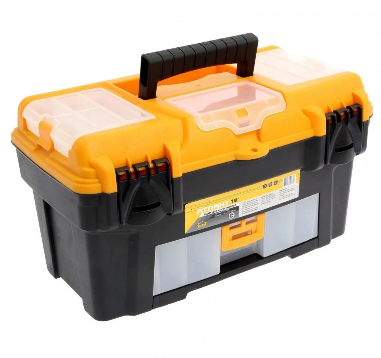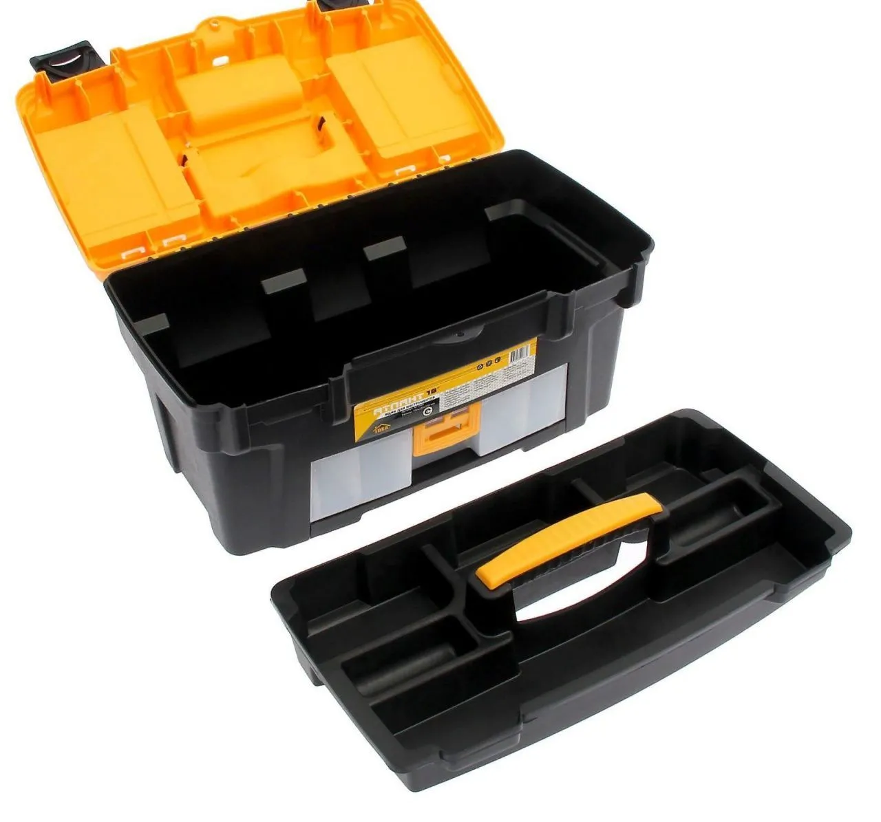 Ящик для инструментов АТЛАНТ 18' (с консолью и секциями) черный с желтым