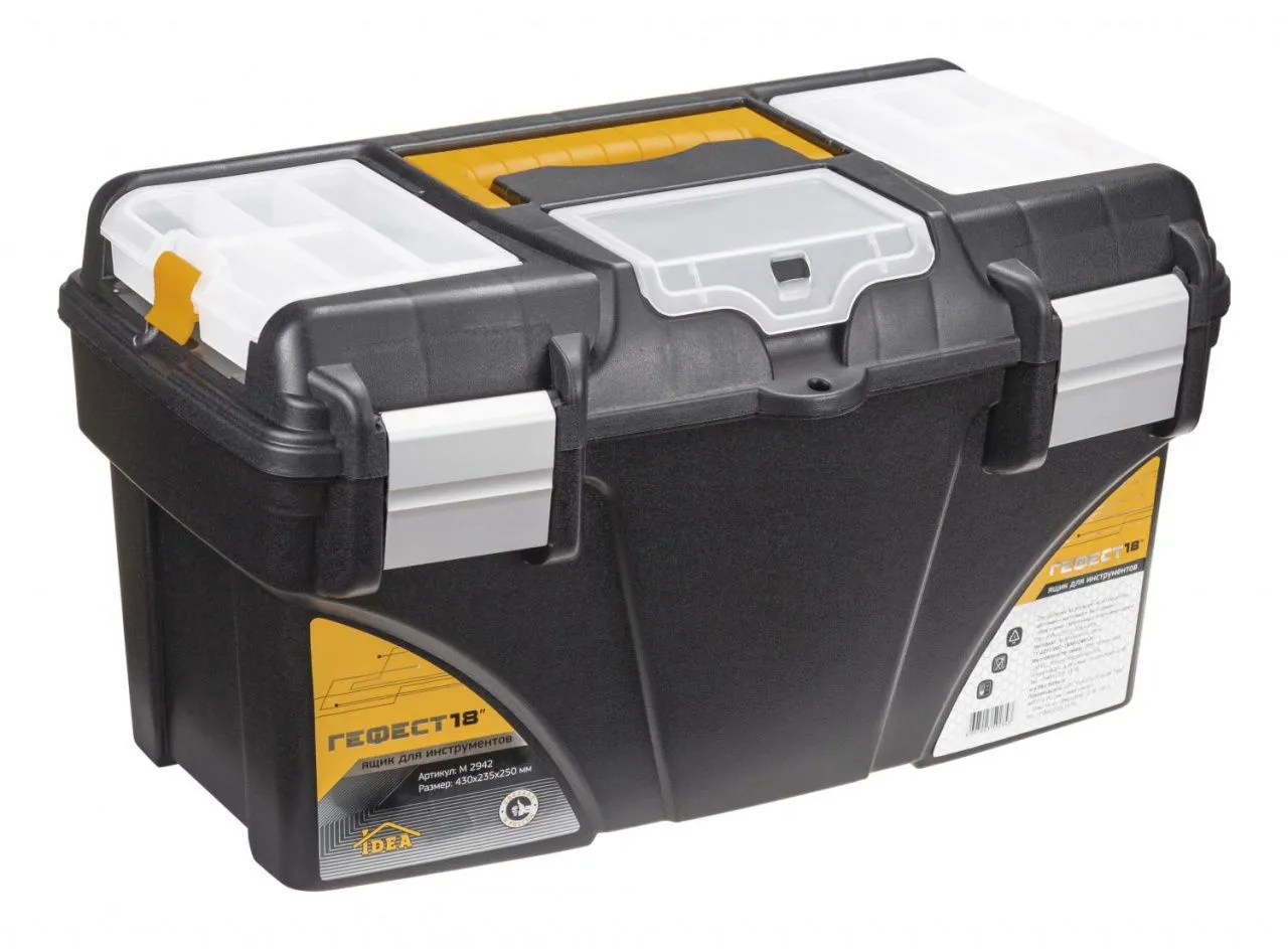 Ящик для инструментов ГЕФЕСТ 18' металл замки (с коробками) черный с желтым 0,25х0,235х0,43м