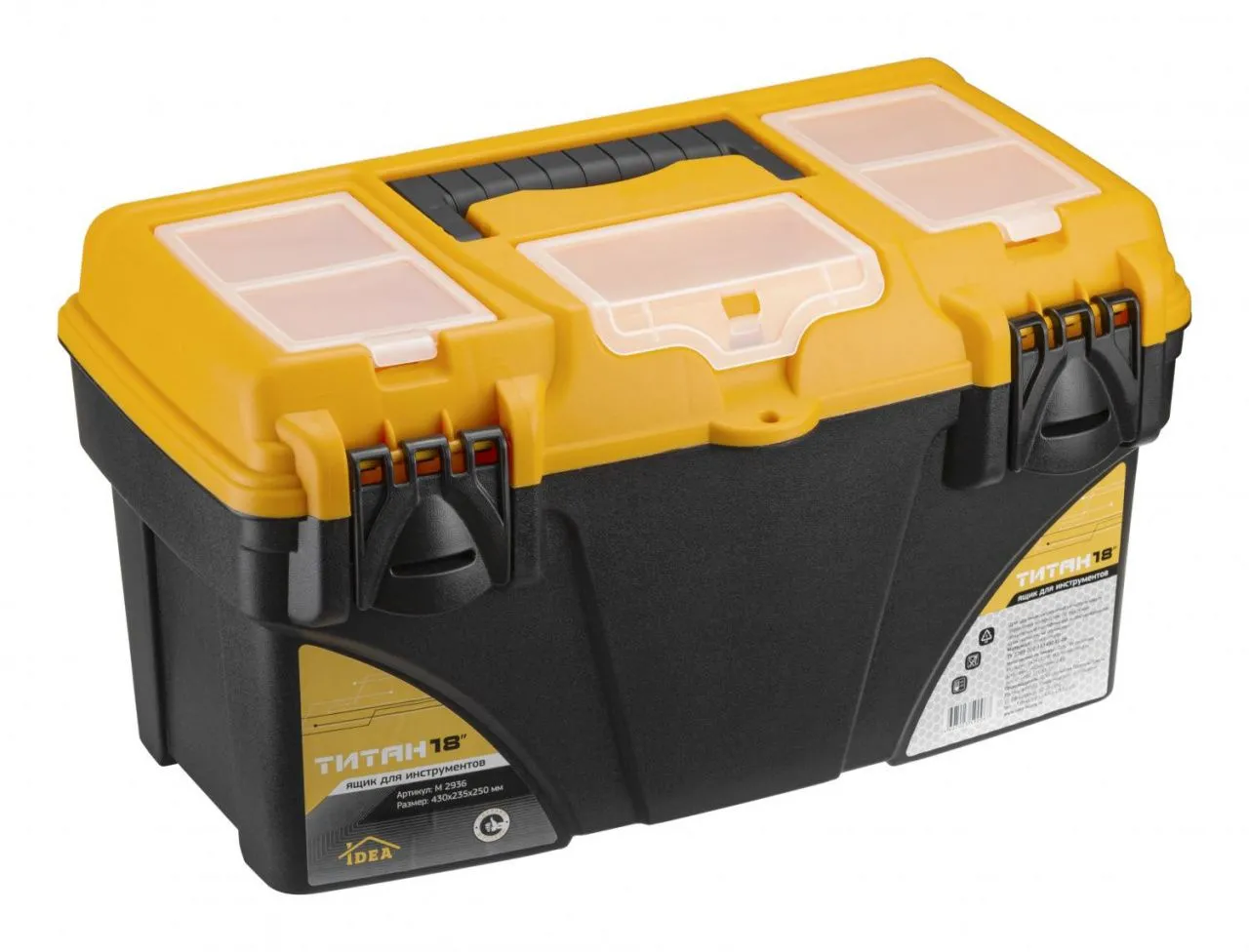 Ящик для инструментов ТИТАН 18' (с секциями) черный с желтым 0,25х0,235х0,43м
