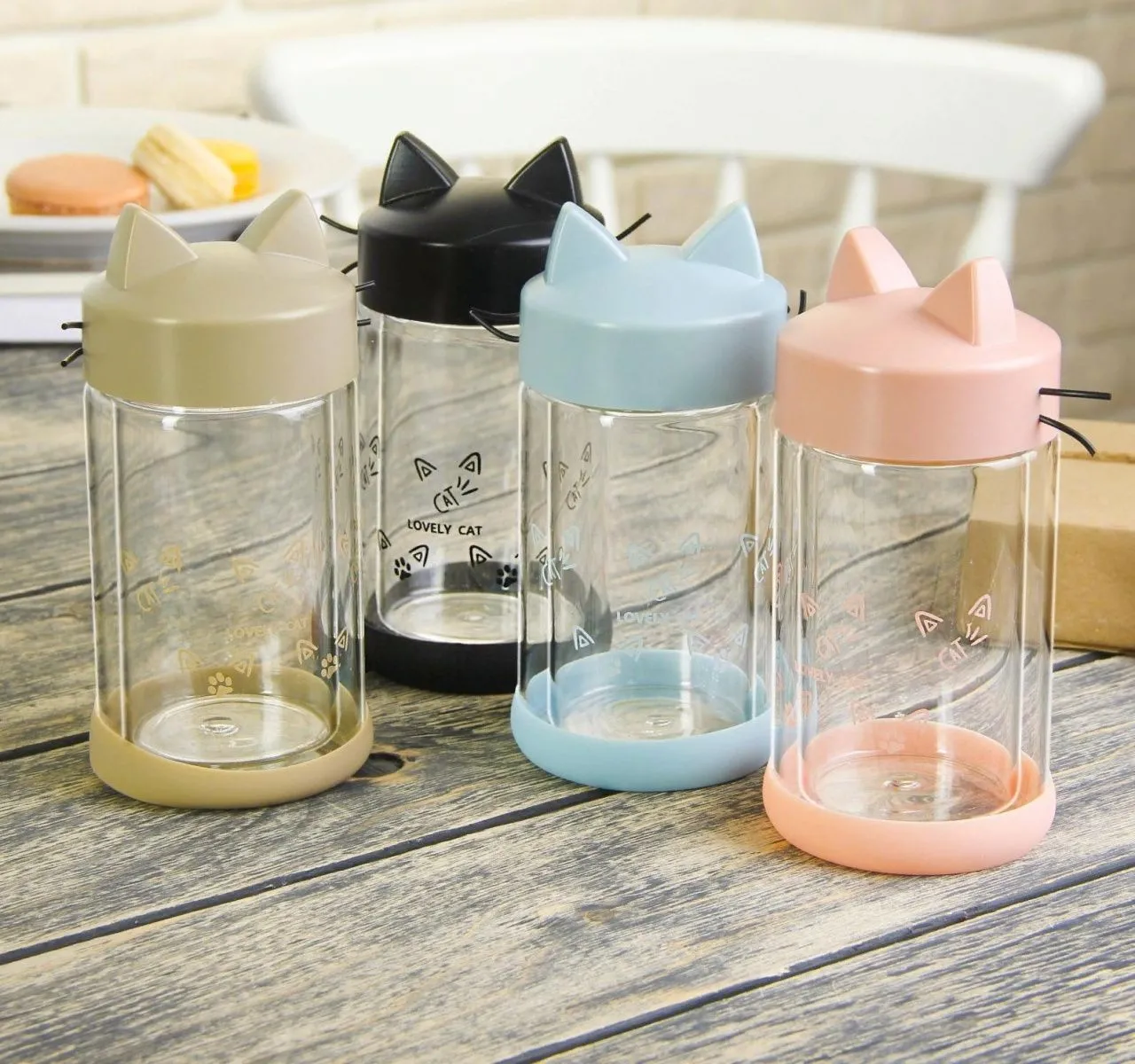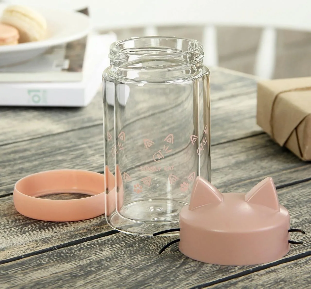 Бутылка двойное стекло 200 мл "Ушки" 7х7х14,5 см, рисунок МИКС