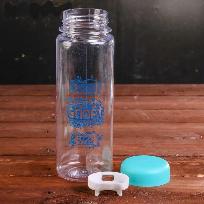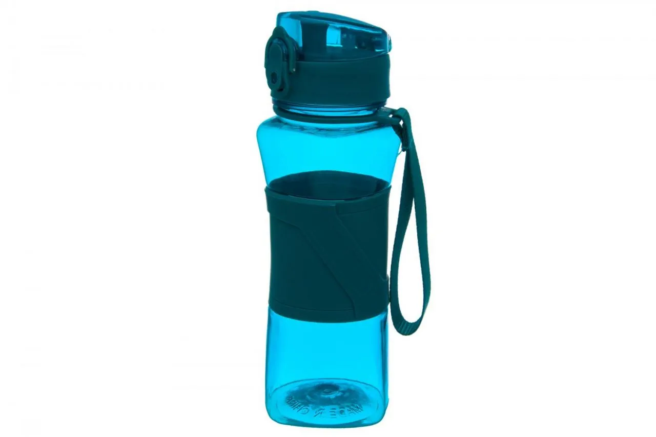 Бутылка для воды "Бирюзовая" 8*7,5*23 см 550 мл, с защитным клапаном от протечек, кнопкой для открывания, поильником, силиконовой накладкой и с ремешк