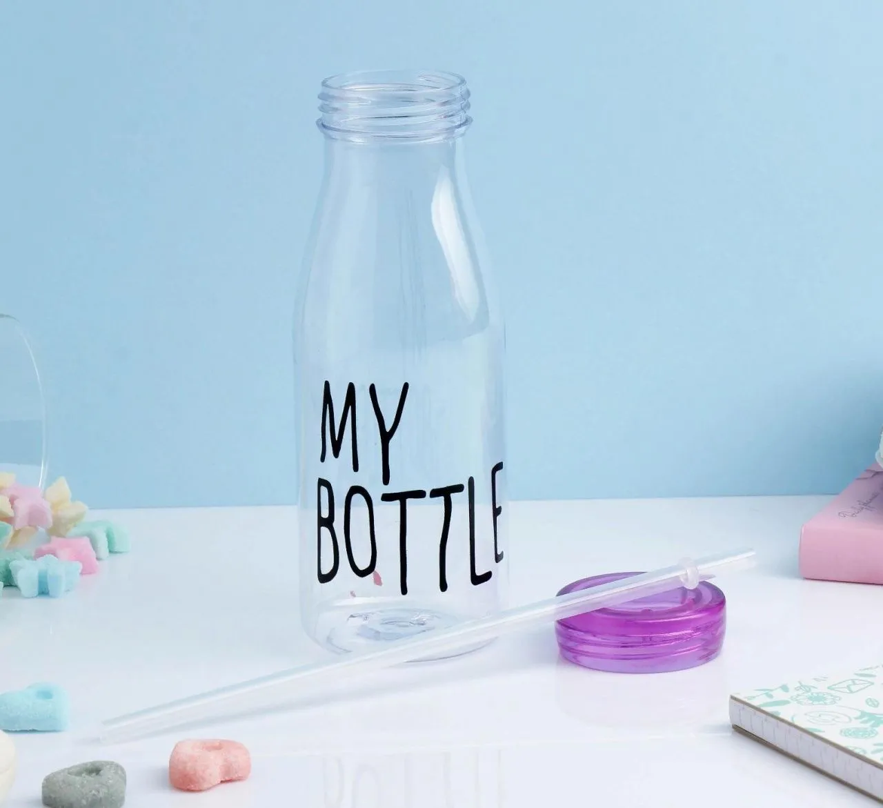 Бутылка для воды "My bottle", 550 мл, с трубочкой, спортивная, прозрачная, микс, 7х14.5 см 4151914