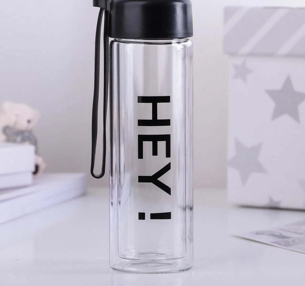 Бутылка двойное стекло 420 мл "Привет", рисунок МИКС