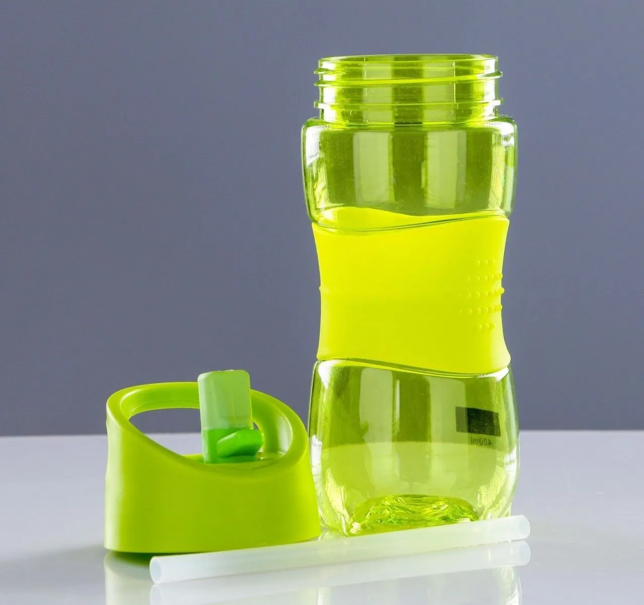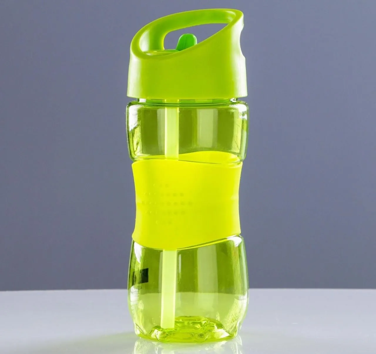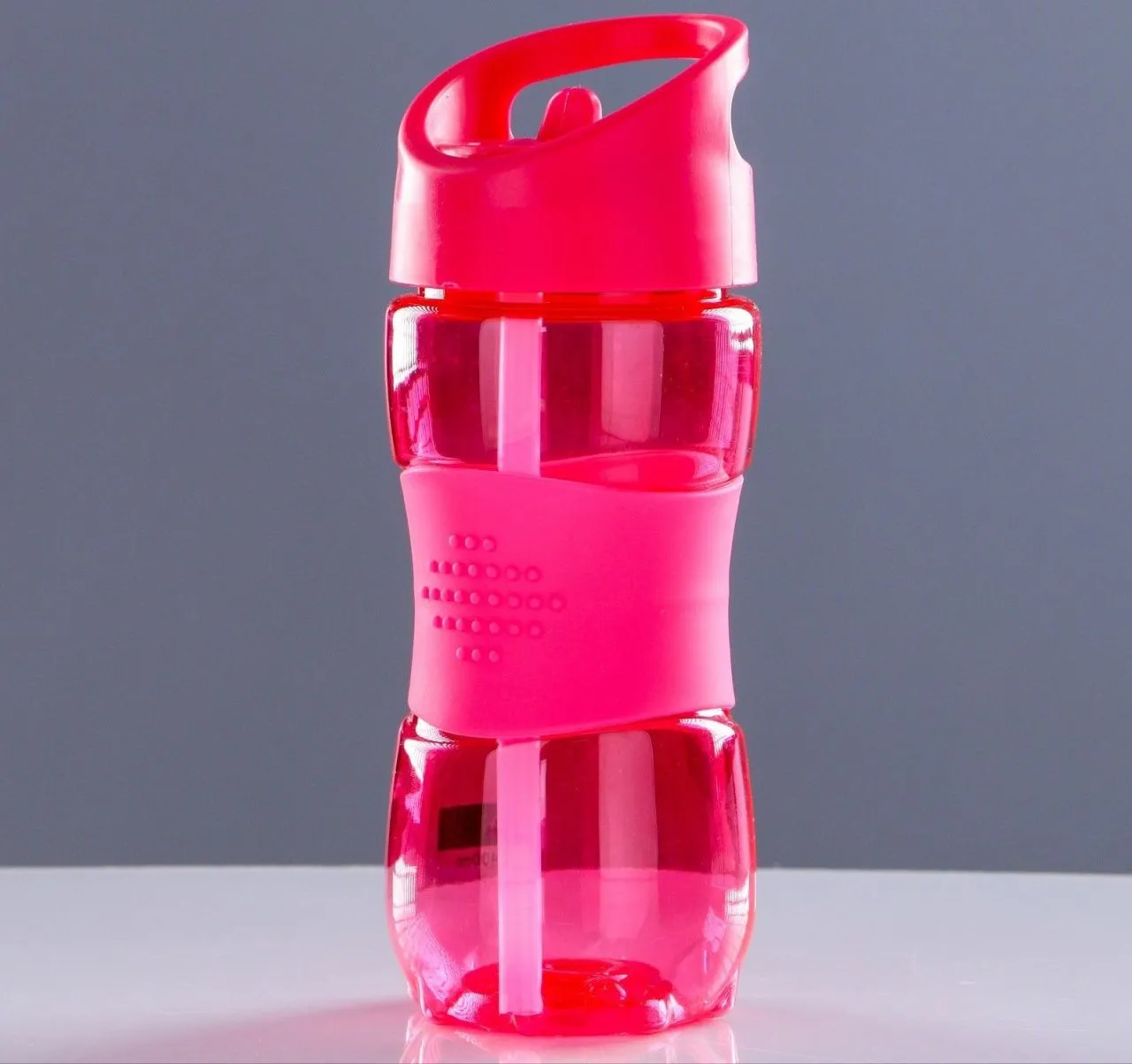 Бутылка для воды 400 мл, спортивная, вставка силиконовая посередине, микс, 7х19 см 2969286