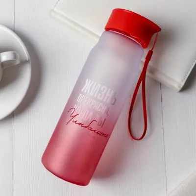 Бутылка питьевая с поильником и откидной крышкой с кнопки, 600 мл, микс