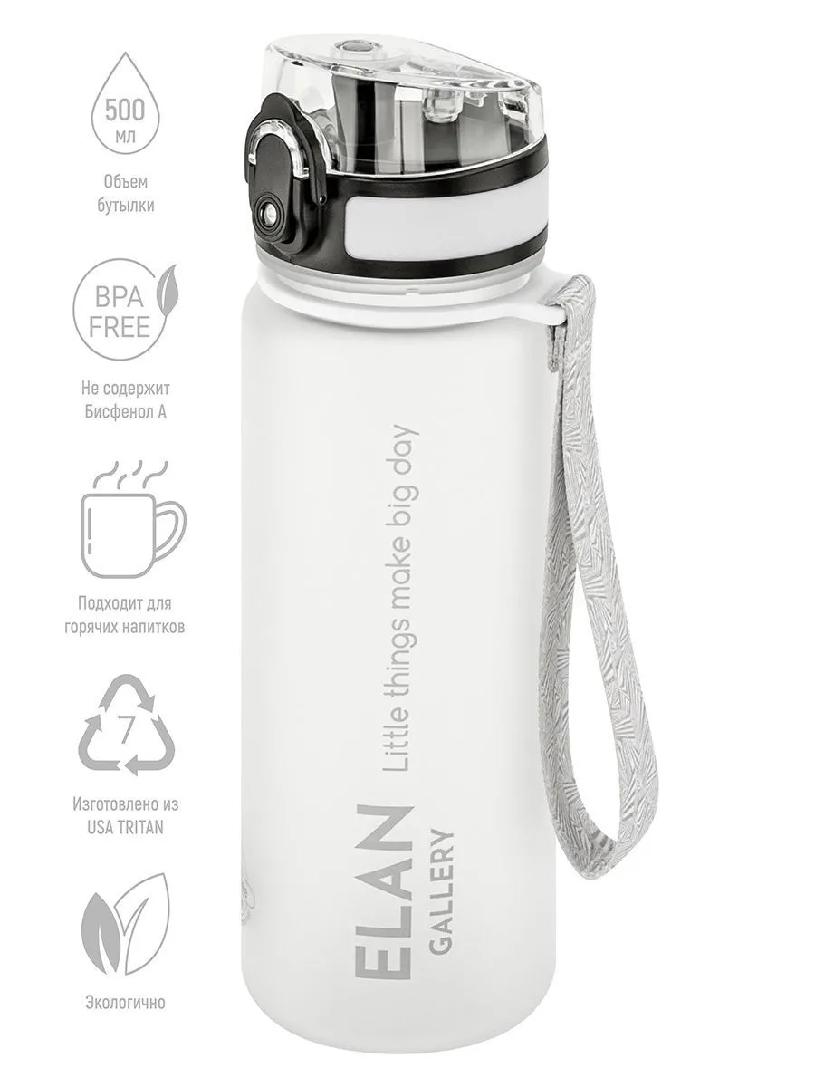 Бутылка для воды "Style Matte" белая 6,5*6,5*23 см 500 мл, с углублениями д/пальцев, материал USA Tritan, 100% безопасный