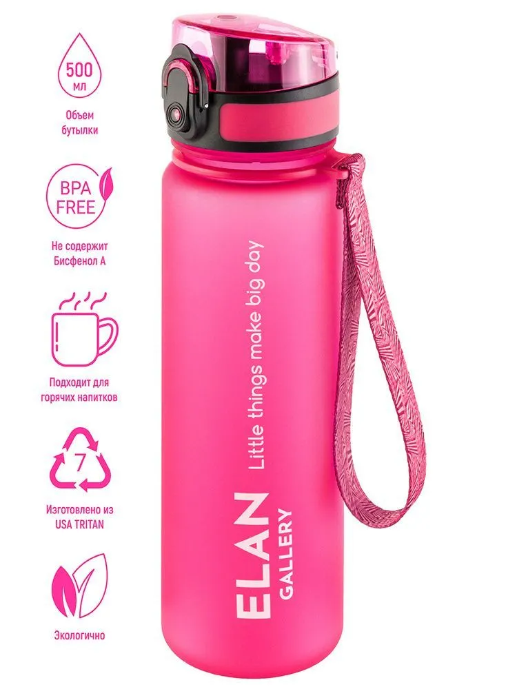 Бутылка для воды "Style Matte" фуксия 6,5*6,5*23 см 500 мл, с ситом, мерной шкалой, материал USA Tritan, 100% безопасный
